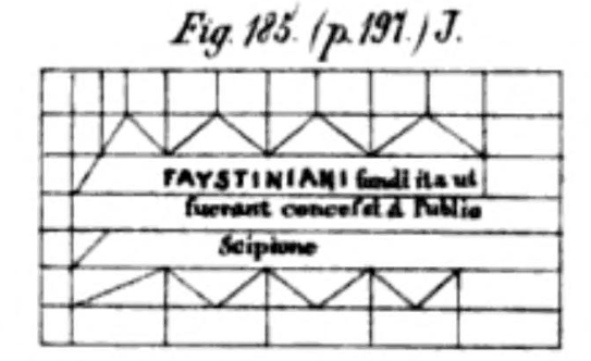 Feldmesser"[ローマの土地測量についての文献集]という名前で[1848~1852年に]出版された文献集である。その中身としては、一部は土地測量を実地に行っていた人によって書かれた土地測量の技法についてのガイドブックであり、また別の一部は幾何学について書かれたものの抜粋であり、また法律の断片であり、更には"libri coloniarum"[植民地の文献]という名前で知られているイタリアにおいて分割された土地に対しての、現存している[法的]様式の目録であり、そしてさらにまた研究の経済的側面にとって特に[有用なのは]、"scriptores rei rusticae"[農業に関する諸著作][25]であり、それはつまり農場経営の初心者向けの便覧であり、その著者の内例えば大カトー[26] のものについて見れば、明らかに多くの箇所で確認出来るように、この土地制度という領域で手当たり次第に一種のディレッタント的な知識を寄せ集めたようなものでは無かった。今言及した2つの文献史料集成["libri coloniarum"と "scriptores rei rusticae"]においては、その明らかに非常に有用な中身が、それを学術的に利用するにあたって、伝承としてのみ現在に伝えられそれが故にいつの時代の話なのかがはっきりしない文献素材という性格によって、その[史料的]価値が損なわれてしまっている。従ってそれを利用するに当たり、度々その信頼性の確認が必要である場合には、まずは著作者達の言明を具体的にはいつの時代を指しているのかを不明として分析し、それからおおよその推定の時期を、それが実際的にはまあ妥当であろうというレベルで読者に伝え、そして時期の推定に問題がある事項については、ただ「以前の時代の」あるいは「以後の時代の」という形で処理することとする。土地の測量人に関することは、次のことだけを確かなものとして扱う。それはつまり、全ての彼らの[測量]技術に関する言明は、太古の昔より伝えられている実際的な取り扱い方法に基づいている筈であると見なすことである。その理由は、その当時のローマ人が一般的に直接習い知っていた幾何学のレベルについて検討するのは全く不毛であるからである。以下の叙述においては我々はまず土地の分割のやり方と、土地の法的な等級付けの関係を明らかにすることを試みる。その目的は、それに続けて後者について個々の事例に立ち入って調査することである。